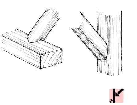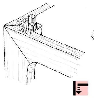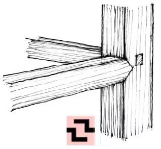2、斜:榫材与卯材(指木纹)是斜角关系,或锐角或钝角,卯眼与榫肩均非90°连接;另有榫材与卯材虽垂直,但卯材扯转斜肩的榫卯连接。