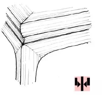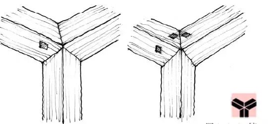 12、互:两材榫头与榫头相互咬吻并加锲钉。