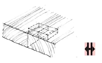7、栽:两材杆都要凿眼对合的平行拼接,中间另设小榫顺纹栽入连接,一般情况下,小栽榫头一深一浅。