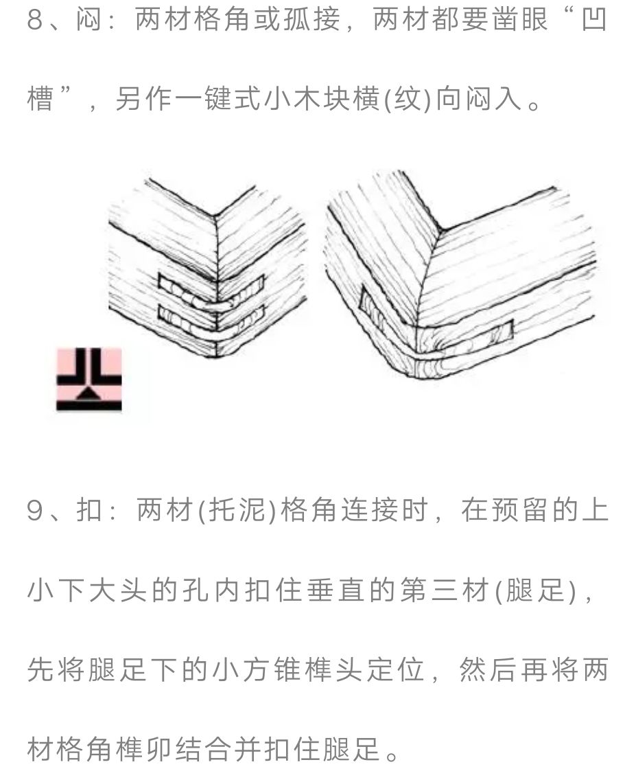 15、位:仅作定位的凹凸活络连接,无须常规榫卯的紧固或严密,如门轴或不滑移的门闩及抽屉下活络滑道等。