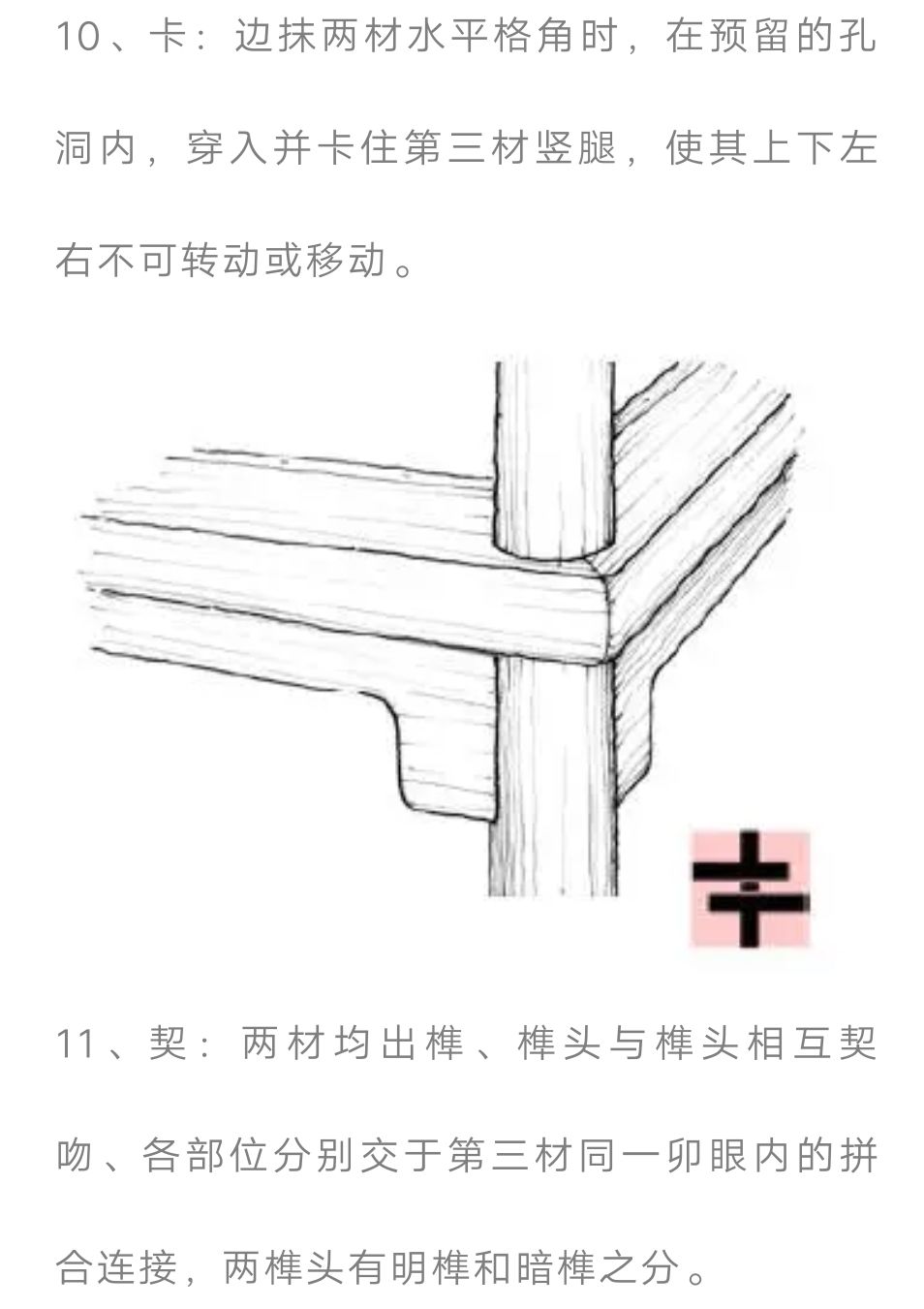 16、交:两材定位后的“十”字交或成角交,有固定交合和活络交合两种。