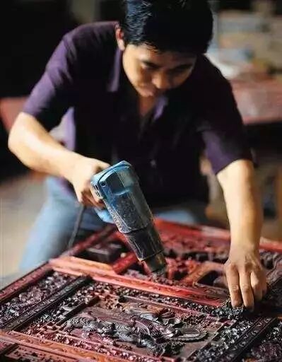 起蜡要仔细认真,特别是有雕刻的地方,不能留残蜡,否则会影响家具表面的光洁度。