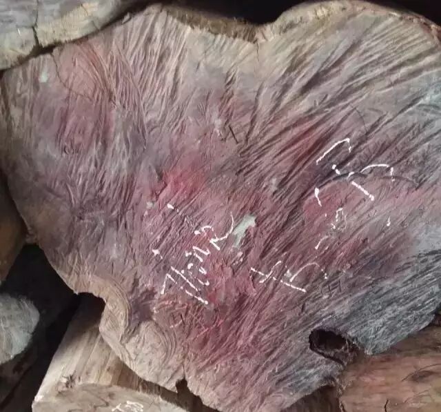 而前段时间在某地区的红木木材市场上见到了这样的一批“精品”大红酸枝原木: