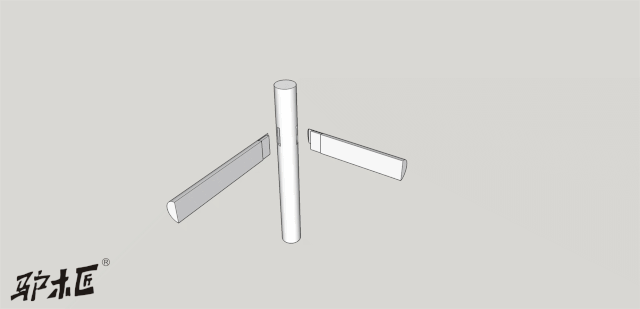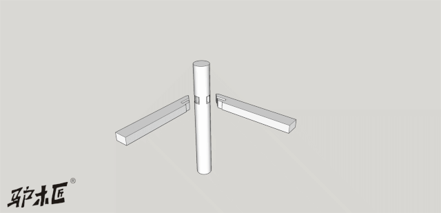 【39】圆材丁字形接合(裹腿做,两枨出榫一长一短)