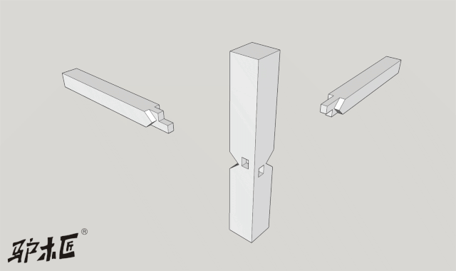 【42】圆材闷榫角接合(出榫一单一双)