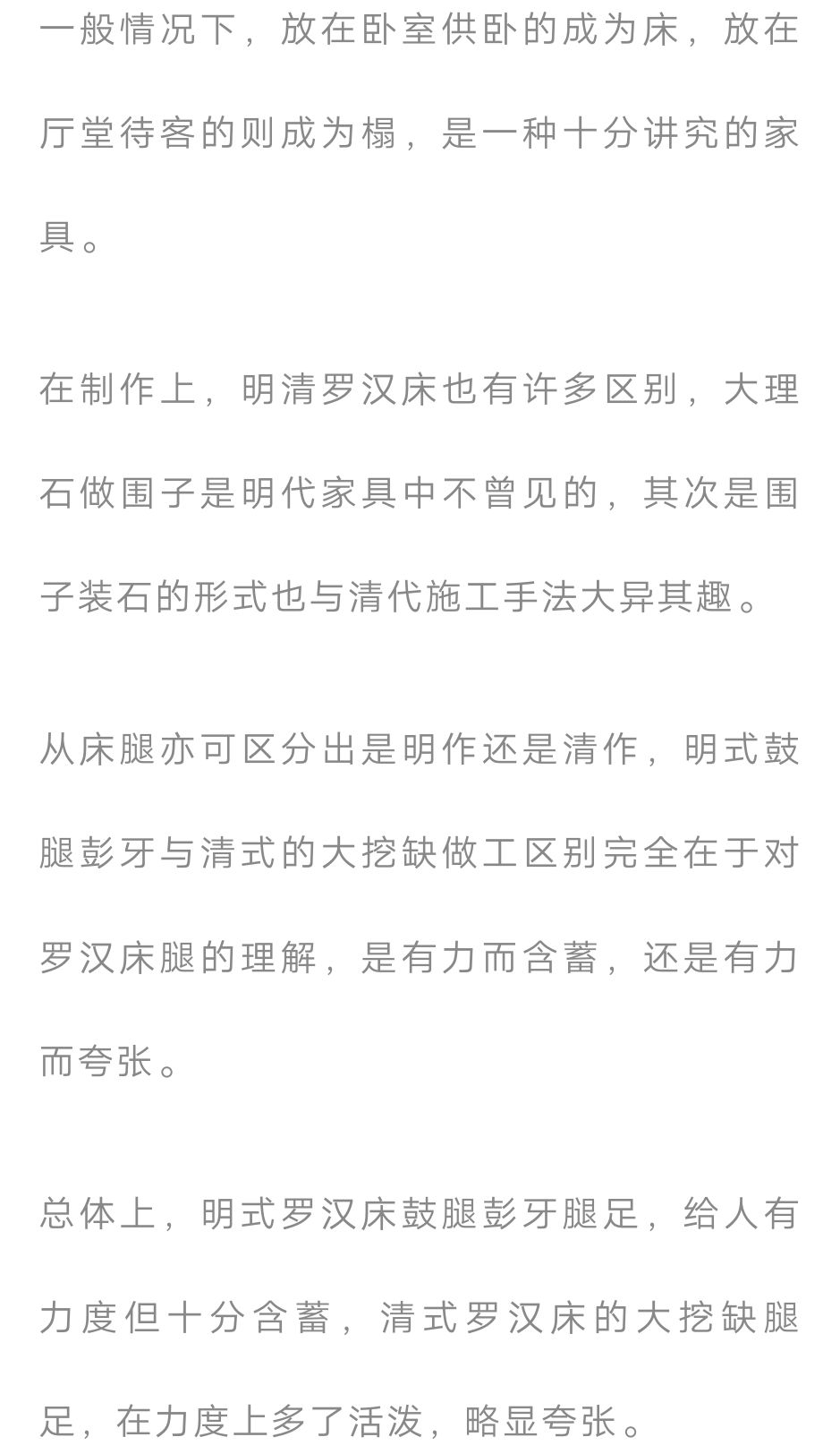 明代的罗汉床有束腰和无束腰两种形式,有束腰多为鼓腿彭牙大挖内翻马蹄,无束腰则为直腿式。