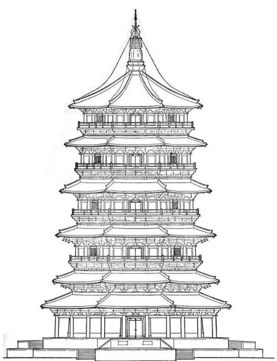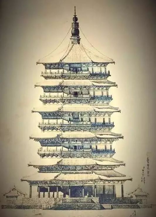 梁思成绘「山西应县佛宫寺辽 释迦 木塔」