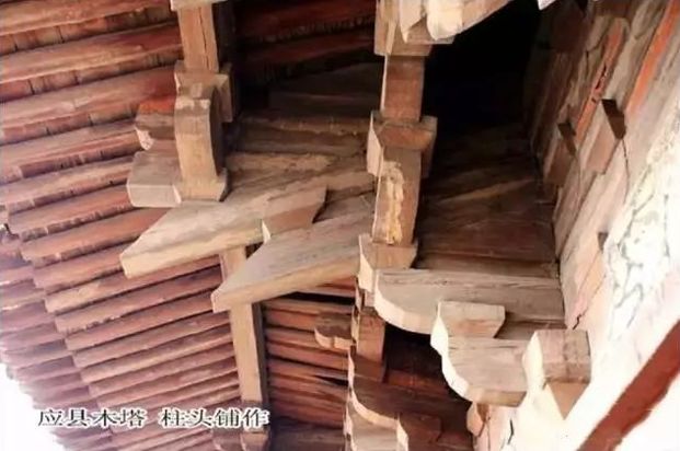 木塔斗拱运用十分巧妙,有54种之多,式样繁复,构筑奇巧,每朵斗拱都有一定的组合方式。