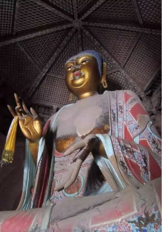 据说这尊佛像的手心可坐四人打牌,耳朵里可容两人下棋。