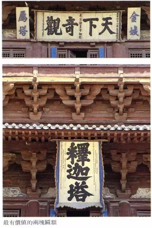 从文物的角度而书,价值最高的是第三层南面的“释迦塔”木牌,不仅书法漂亮,匾额上还有应县木塔几次修缮的年代记录,对考证木塔历史是相当珍贵的史料。