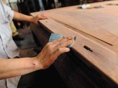 不少新制成家具刚用600目砂纸打磨过,那些带有颜色的细粉还残留在木器上,或混在蜡质上,这时用干布或湿纸巾易擦出颜色,擦干净以后,则不易再出色。