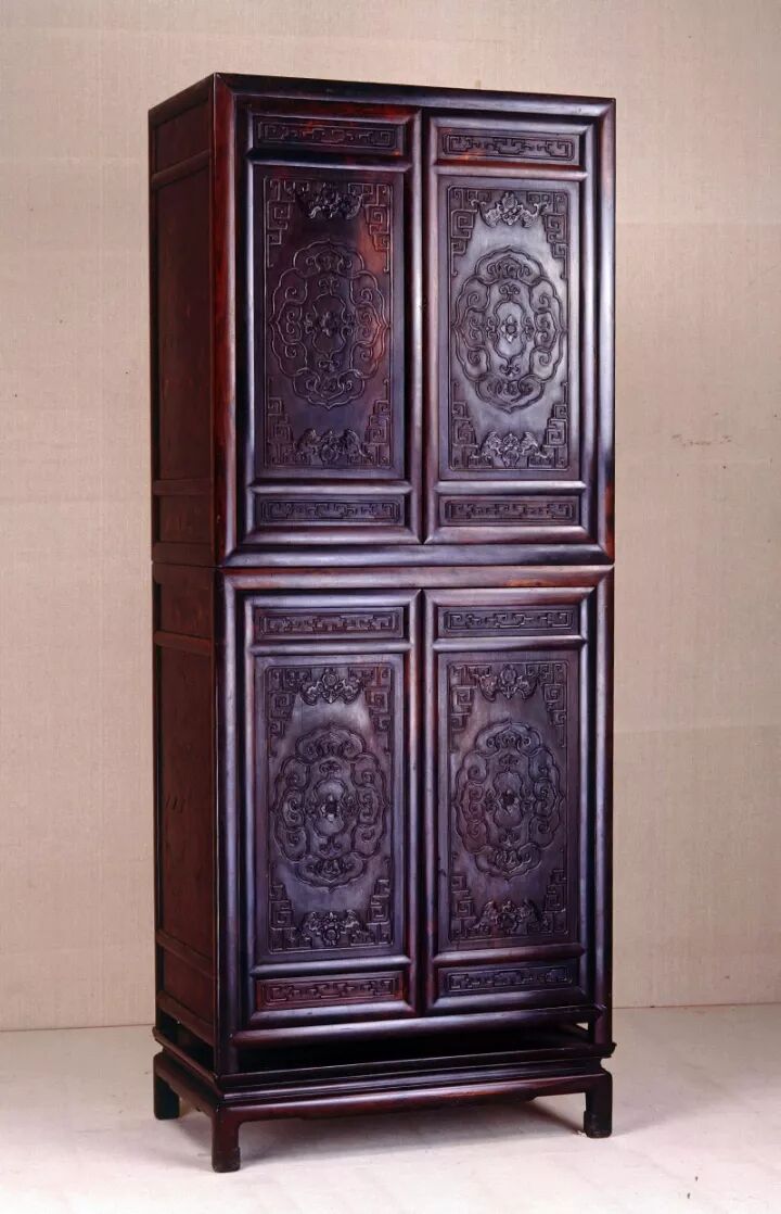 当所谓小叶儿紫檀匮乏之后,大叶儿紫。檀就粉墨登场了。过去老工匠说的大眼儿紫檀也有人称之为花梨紫檀,是说这类紫檀材质粗糙,棕眼大而长。花梨紫檀是晚清民国紫檀家具热时的替代物,来源不清,数量也不太大。这类紫檀历来为收藏家所不齿,以为滥竽充数。
