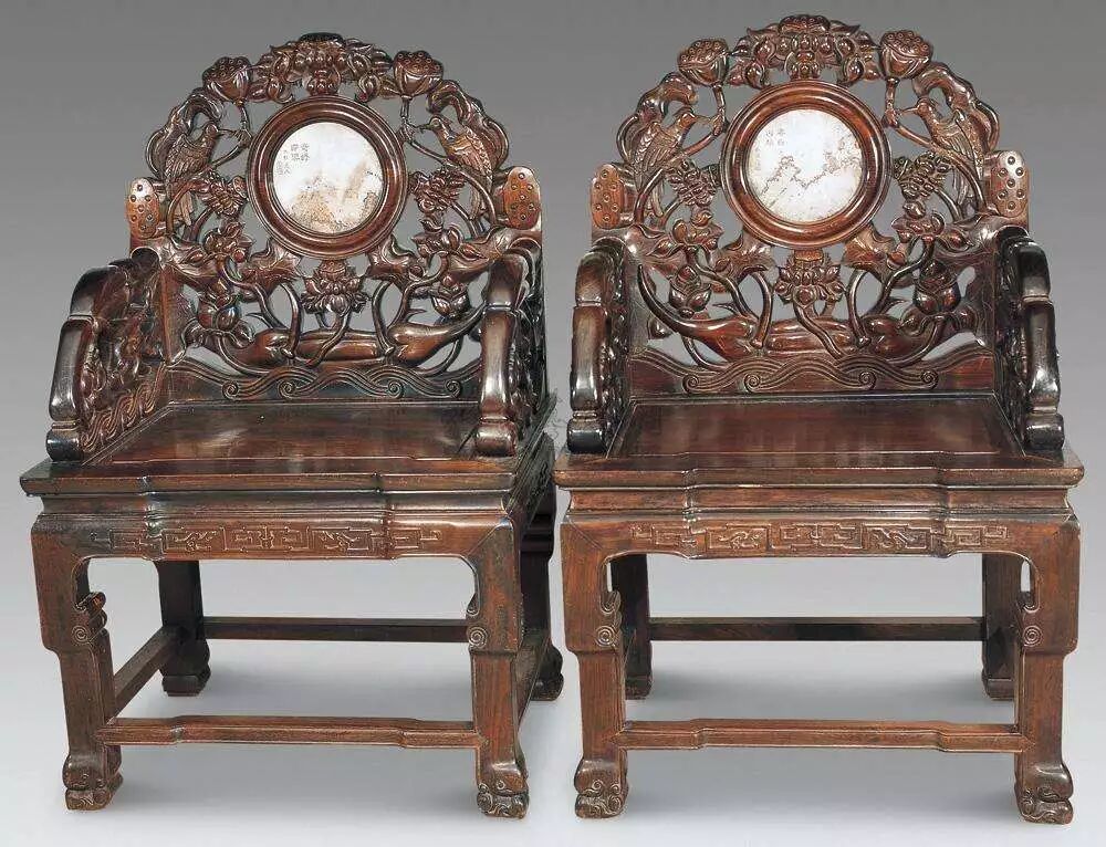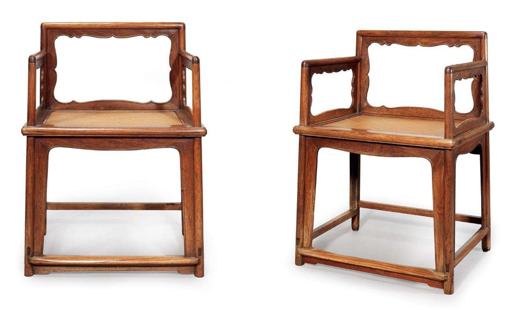 明代中后期,有的椅圈在尽头扶手处的云头外透雕一组花纹,既美化了家具,又起到格外加固的作用。