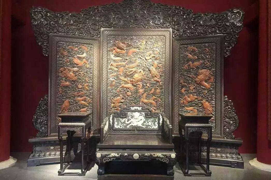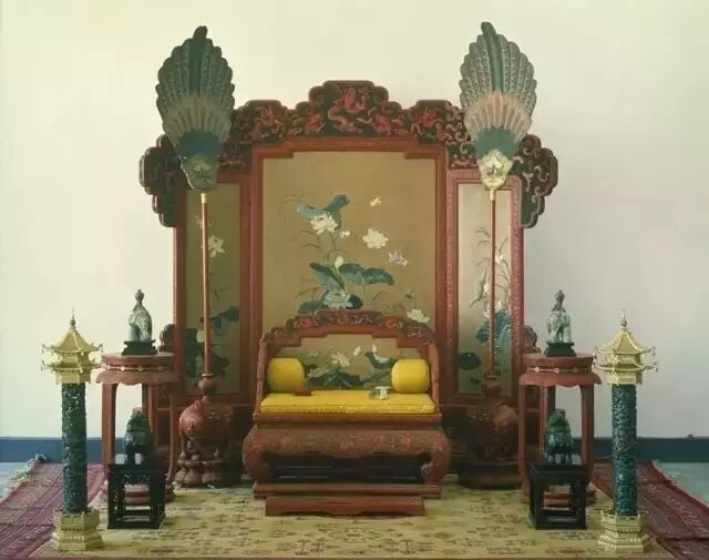 诸佛的“宝座”,在十五世纪前期即被人间天子借用,宫廷的宝座左右两边的扶手、搭脑及立柱上缠满透雕盘龙,金碧辉煌,庄严肃穆。