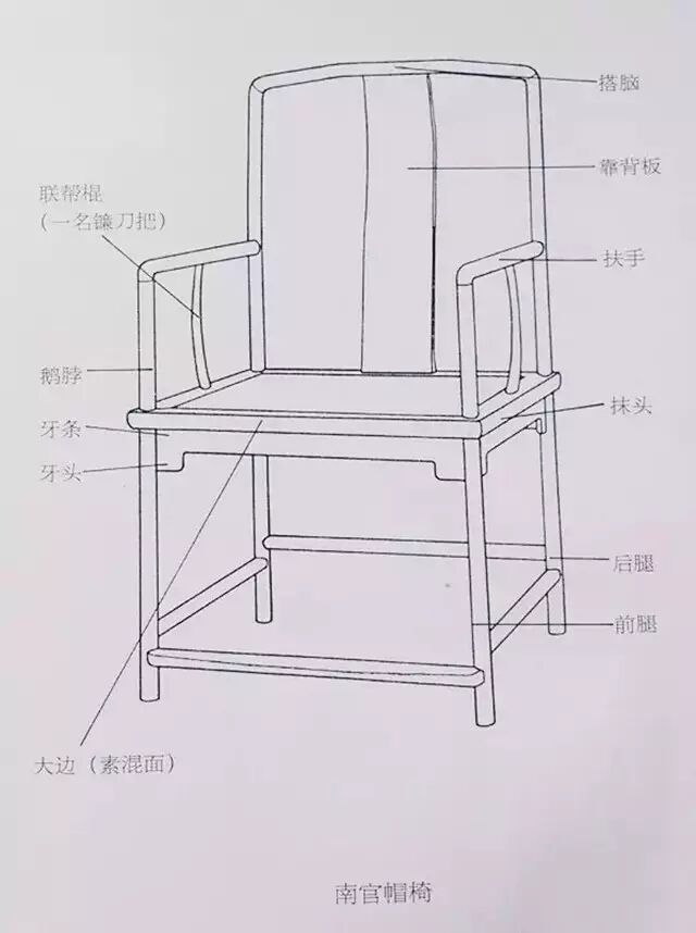 南官帽椅是明式家具的代表作之一,其以扶手和搭脑不出头而向下弯扣其直交的枨子为特征。