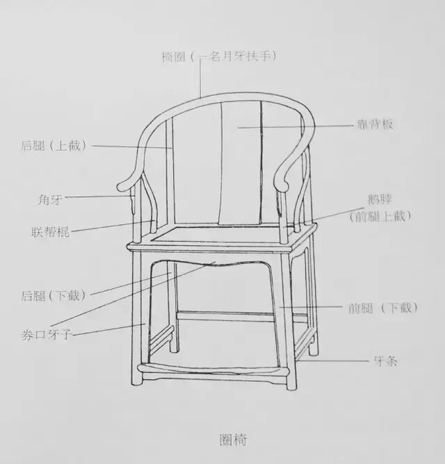 也有的圈椅椅圈从背板向两侧延伸通过边柱后,但不延伸下来。