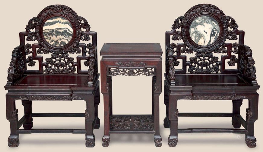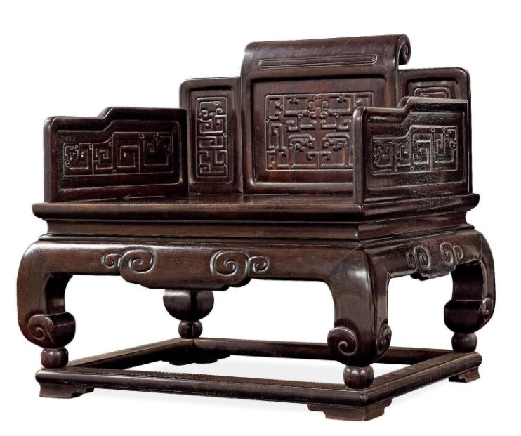 宝座靠背及左右扶手由三块围子构成,靠背呈现出中间高两边底的品字形,后面的围子称作“背板”,而两边的围子就是扶手了。