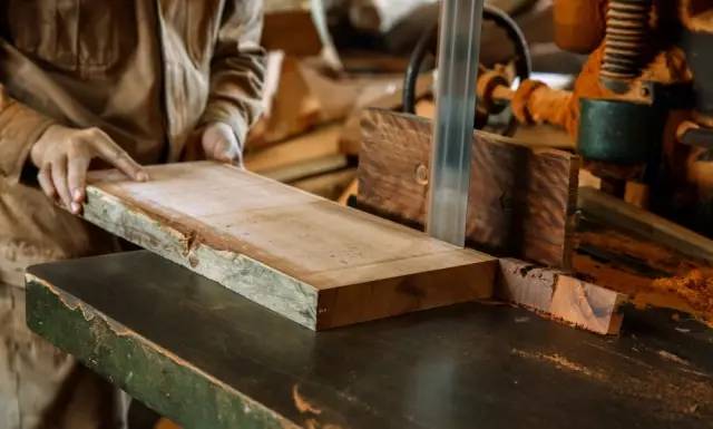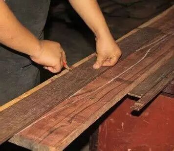原木购入后首先应进行切割锯板,大部分的红木家具厂都会送至专业的锯板厂进行加工(有些地区称其为行锯),以切割成相应规格的板材。锯板时要根据所制家具的尺寸量体裁衣,长短搭配、综合利用,并且要注意木材纹理的方向。假如锯材时敷衍了事,就会造成严重浪费和材质搭配不当。