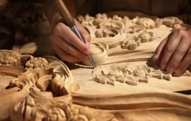 红木家具雕刻的形式最常见的有:平地雕、透雕、圆雕、镂雕、双面透雕、锦地浮雕、透空浮雕等。每一种形式所表现的内容有所不同,各有各的特点。应该说红木家具的全部工艺,雕刻工艺就占了一半以上。红木家具中对手工雕刻的要求非常严格,在雕刻车间,每一名雕刻工在雕刻时都要集中精力,一旦刻错一刀,整张木板就没法修补了,对红木家具成品的质量影响很大。雕刻出的成品还要求:花根清晰,花形活泛如真非真,非真胜真,线脚一统,上下吻合,左右相称,凹凸有序,平光无疵等等,红木家具中木工工艺和雕刻工艺相结合,才能体现珠璧共辉、红花绿叶和异工同曲的效果。
