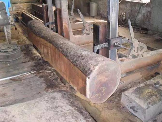 原木运回工厂后,木工将原木用带锯锯成厚薄不同的板材,可以长短搭配,综合利用,减少浪费,节约红木稀缺资源。