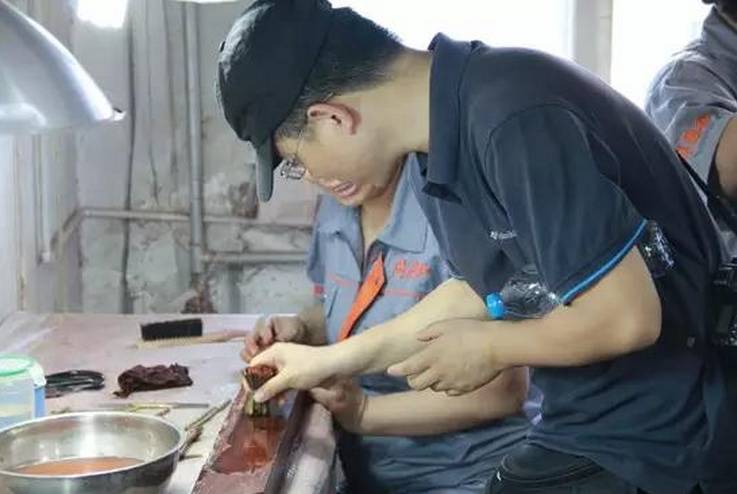 虽然到了这个环节时, 整个家具雏行出来了,但是整个家具的表面看起来很粗糙, 因此就到了刮磨的制作流程。 刮磨是红木家具制作过程中一个重要的步骤,打磨得好坏直接影响消费者对红木家具的第一印象。