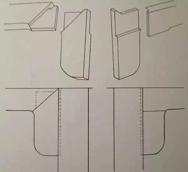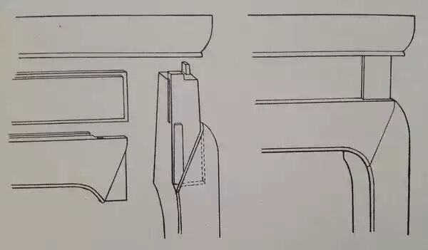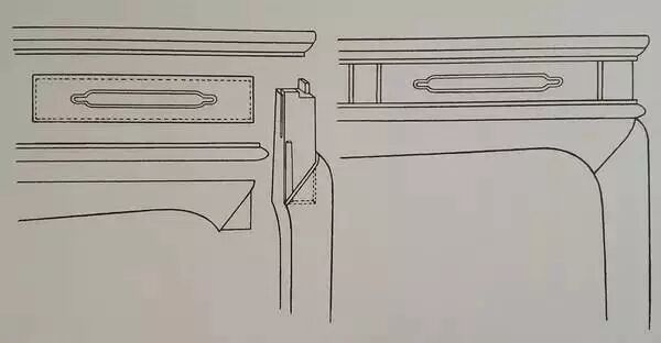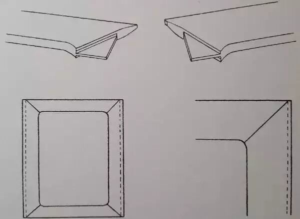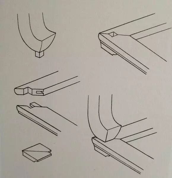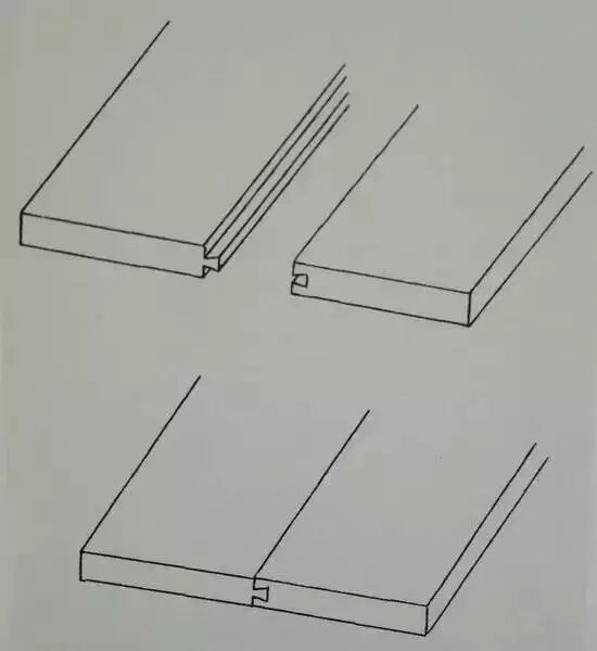 攒边打槽装板(面板装在翘头下,所示为大边与抹头正面的两个不同)