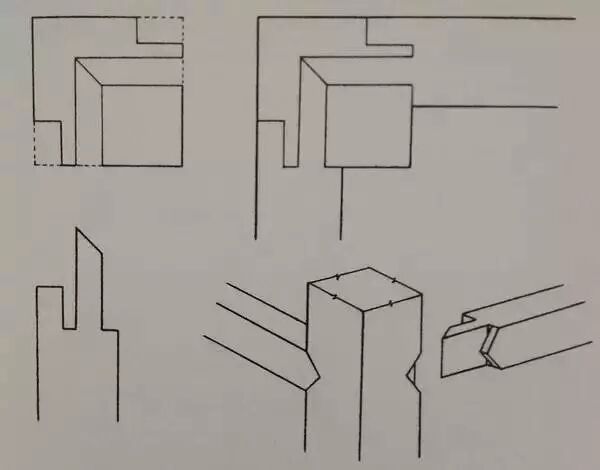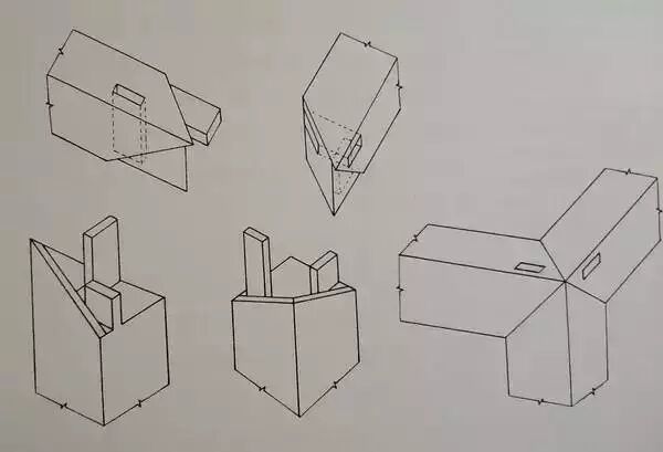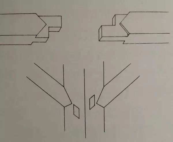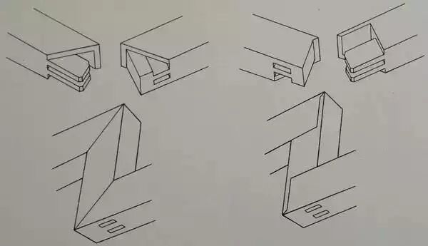 板条角接合:揣揣榫之二(正面格肩,背面不格肩)