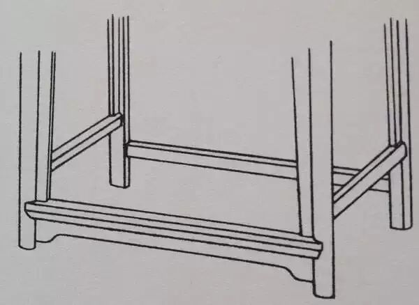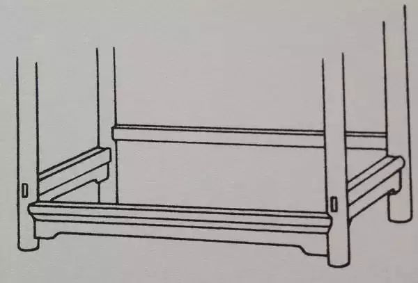 柜子底枨两枨出榫(一透一不透,侧面牙条出透榫)