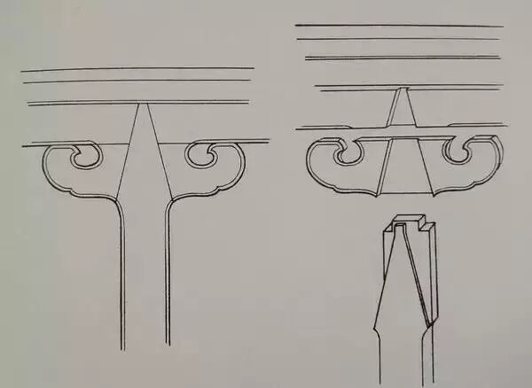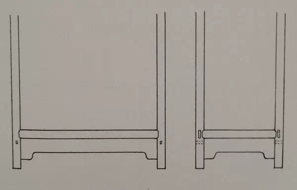 方材丁字形接合(两根横枨与直足相交,大格肩、虚肩,两枨出榫一)