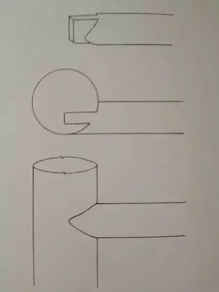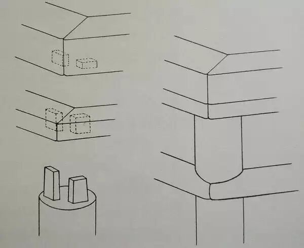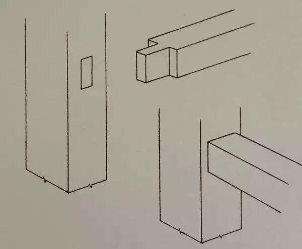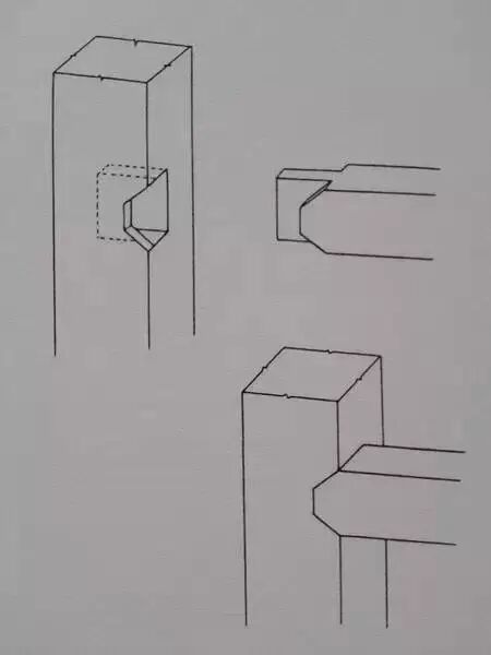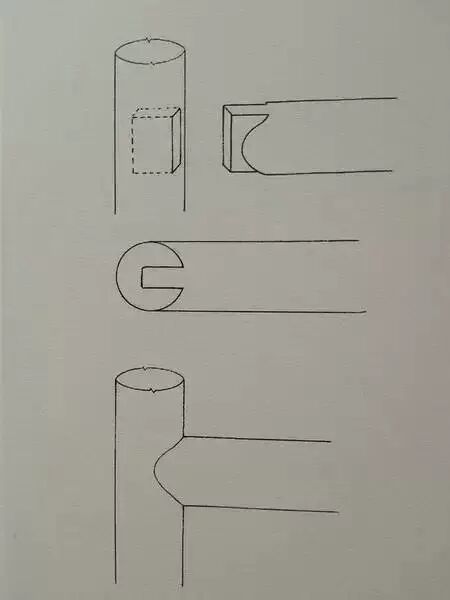 圆材丁字形接合(横材细、竖材粗、外皮交圈、榫卯用蛤蟆肩)