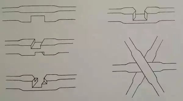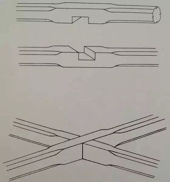 圆材丁字形接合(裹腿做,两枨出榫一长一短)