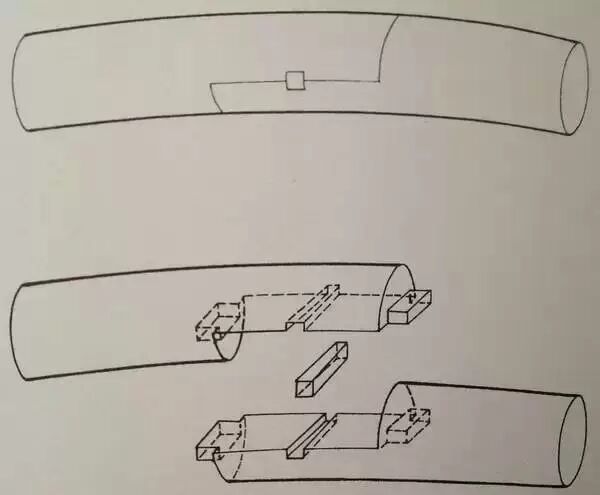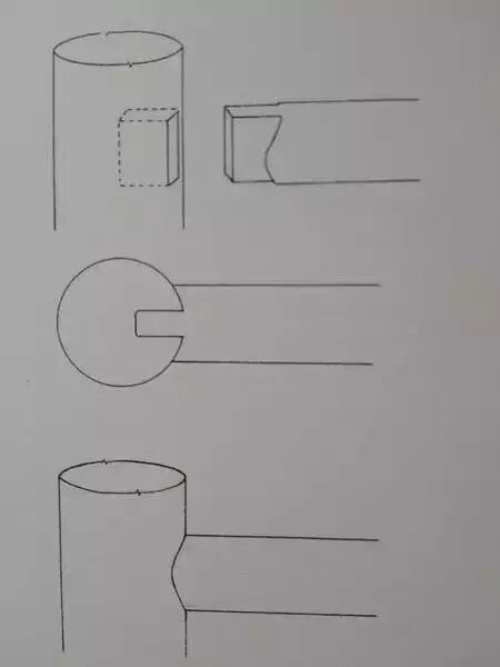 圆材丁字形接合(横材细、竖材粗、外皮不交圈)