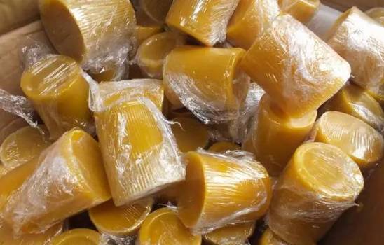 取1400毫升左右淡色啤酒煮沸,加入14克糖和28克蜂蜡,搅拌均匀使之充分混合。
