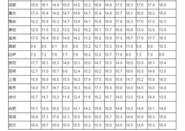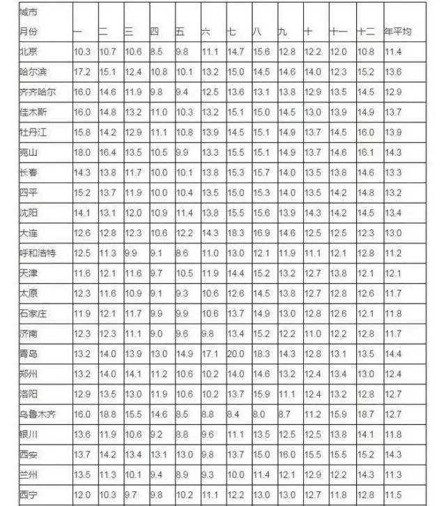 附表:我国主要城市木材平衡含水率全年各月份含水率表
