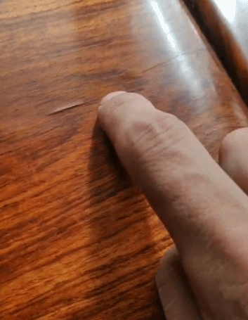 如今很多客户动不动就要求厂家磨光2000目,3000目。当沾沾自喜抚摸如镜面的红木家具时,却全然不知这些使家具反光的是一层胶水。