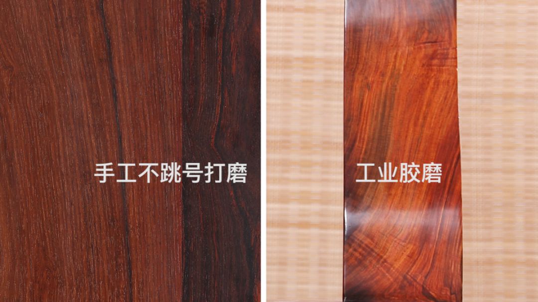 众所周知,红木家具刮磨是家具成形前的重要工序,通过用不同的目数的砂纸对家具表面进行打磨,一般是采用80目、120目、180目、240目、320目、480目、600目打磨,其实这种不跳号的循序渐进的打磨方式,600目就可以让家具表面有一定质感,但可以说是费时费力。