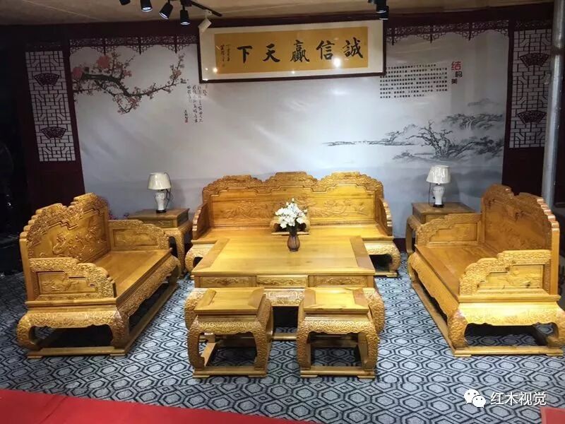北方摆放的红木家具上纹饰适宜配上荷花类的水生植物,或是年年有余类的纹饰最佳。