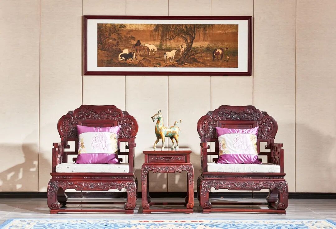 厅堂,是为家宅门面最重之处恰如人体腧穴之印堂,平素客至缤纷人情往来。陈设红木家具以聚气、聚财、聚人,振奋室内阳气,对人际关系、事业发展及居者的身心健康均有益处。