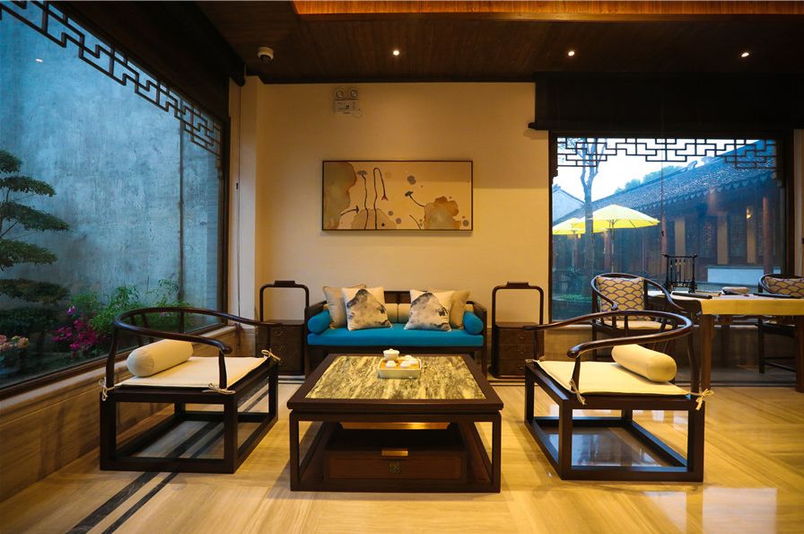 中式装修客厅的沙发套数是有讲究,最忌一套半,或是方圆两种沙发并用。
