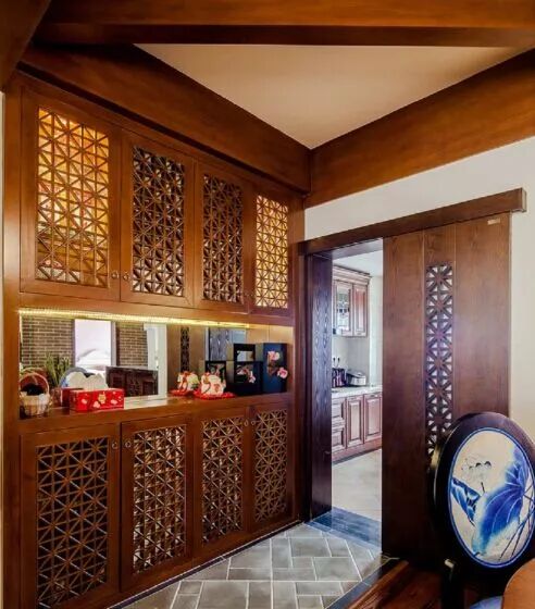中国的建筑艺术在现代的家居装置之中最具风情的体现就是玄关,中国崇尚的儒学、道家文化等等,无一不与此血脉相通,当我们的取向日益偏移到宜家风格、现代简约的时候,真正的中国家居文化精髓却被悄然湮灭。