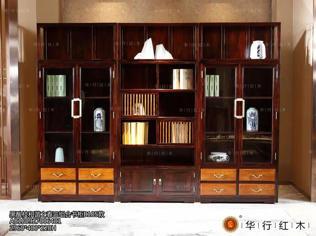 现代书房中常用到的,是直棂架格,架格配有门,并且架格的门是竖条拼接而成,能看到柜中陈设之物。