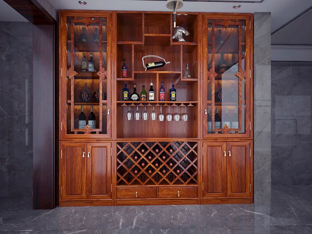 下部与顶部封闭空间,兼具安全性与私密性,具有强大的储物功能;酒杯架、酒架满足收藏及品酒的需求。
