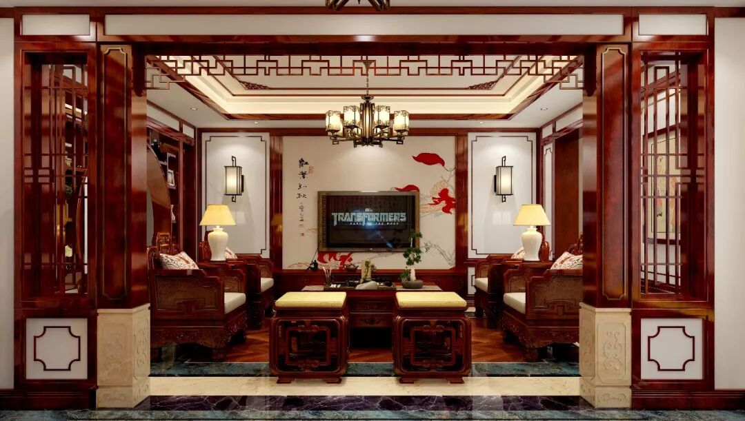 独栋别墅中式红木整装—简单轻奢,雅致却不繁重
