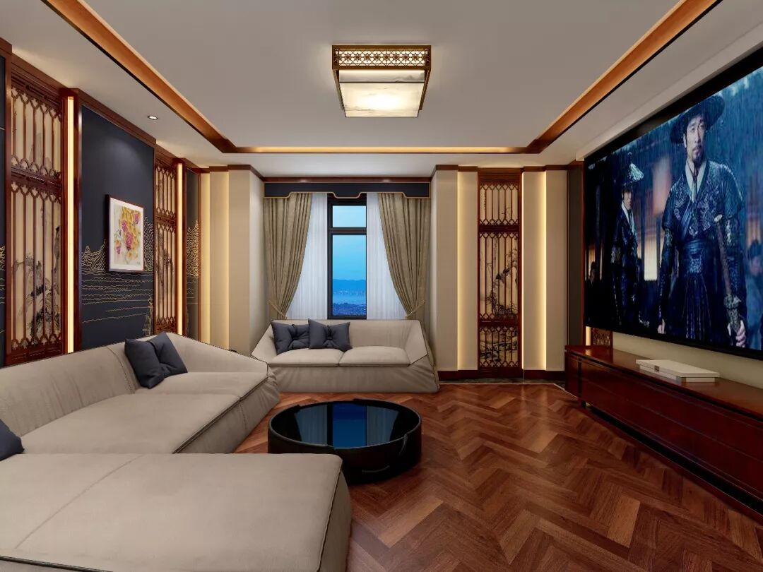 影音室宽大明亮,乳白色大沙发围卧一圈,拉上窗帘,一盏茶,一部电影,也是惬意十足了。