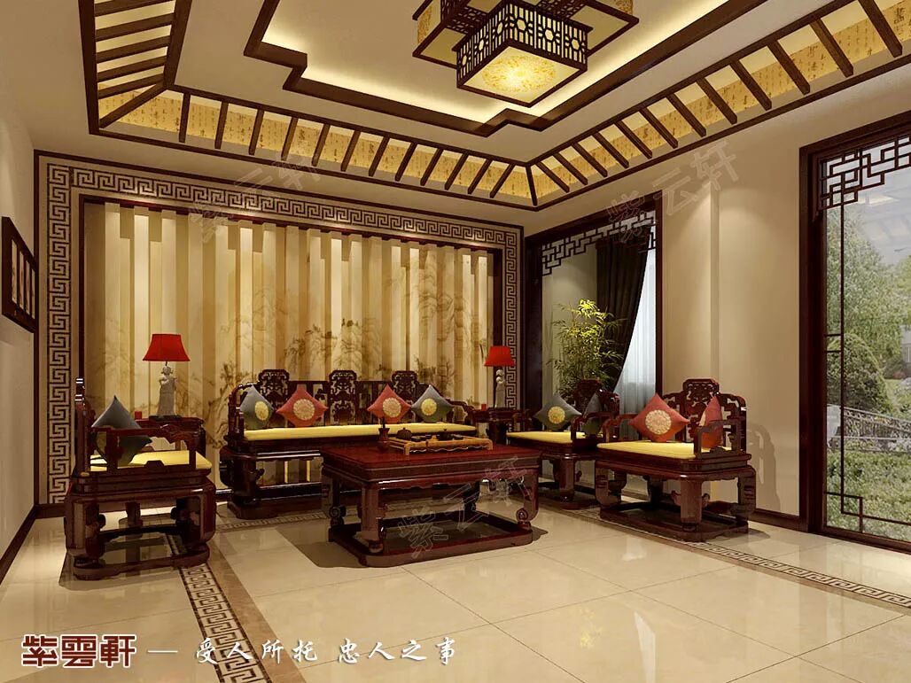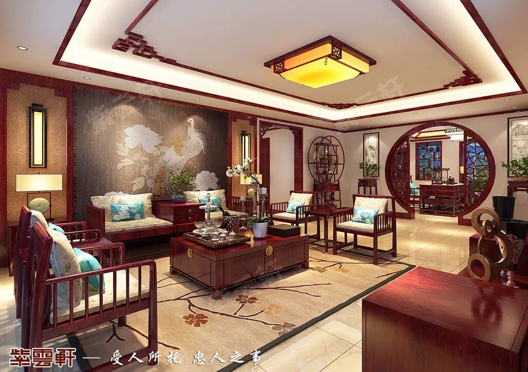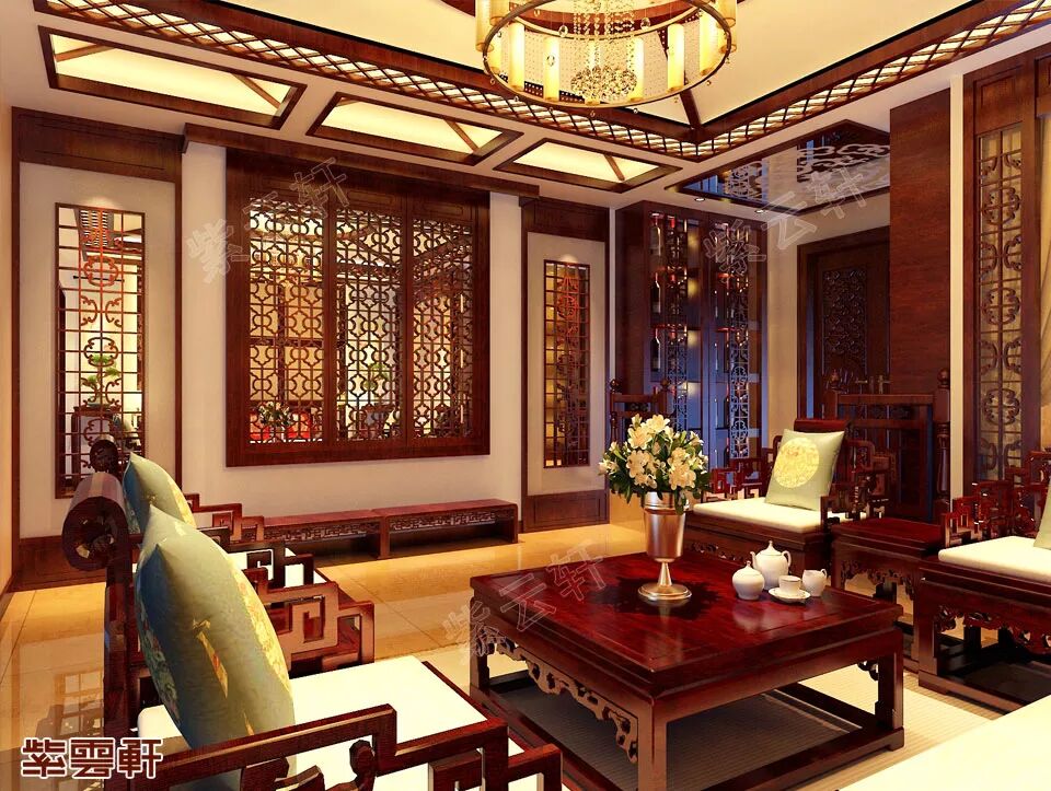 古典中式风格客厅重华美之彩,精雕细琢的装饰将客厅装点的如雕梁画栋,奢华富贵的风格尽显雄厚底蕴。