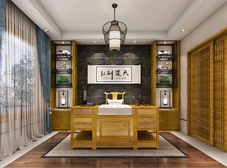 利用屏风和博古架,再增添一张古式书桌,一份书香世家的韵律就此而生,现代社会快节奏,停下脚步看书,是种陶冶情操的享受。如还有空间剩余,甚至可以摆上几张茶桌,和朋友品一杯茗茶,谈笑风生,惬意悠然。
