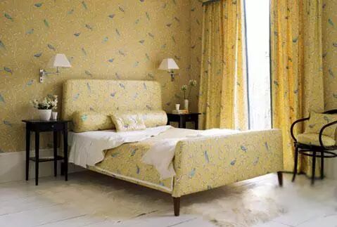 传统中式的主要元素之一就是花鸟,但把花鸟与浅黄色相结合并运用到中式空间的设计算是比较大胆的做法,让人感觉亲切,也不失传统的典雅。