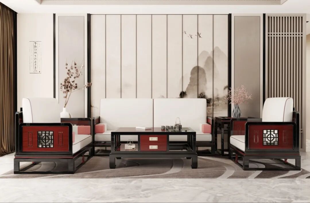 红木家具原材的颜色虽然不能改变,但只要新中式红木家具能够更好地搭配软装的色彩去给自身“加分”,新中式红家具也同样可以展现出惊人的美感。把握好“软”、“硬”之间的尺度,将两者相互结合,便能产生更好的效果,