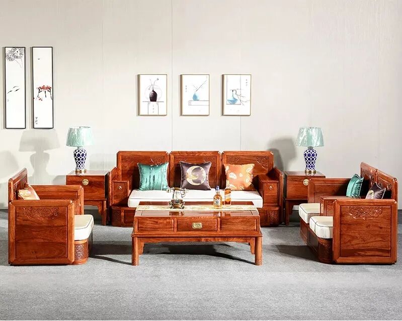 材质上以中低端红木为主,如:刺猬紫檀,缅甸花梨,小巴花,非洲花梨,亚花梨,赞比亚血檀等
