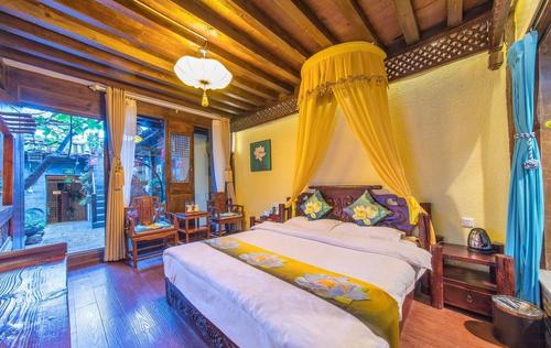 中式风格主要体现在传统的家具和装饰品,以红为主的装饰色彩上。